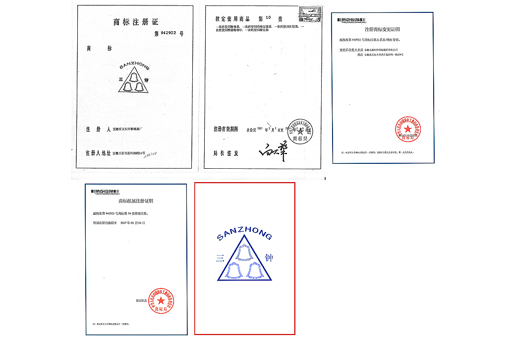 三钟 商标注册证书